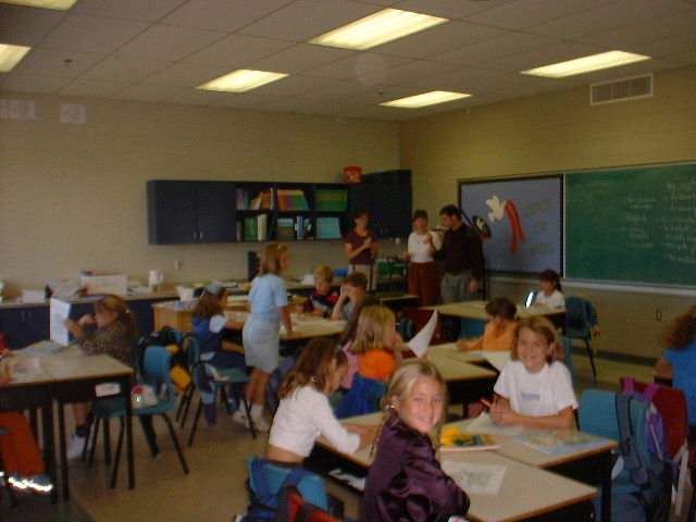 | La classe tête du programme d’immersion français de Tallahassee Community School célèbre les panneau nouveau de l’école. Les signes sont place sur toute les chambres principal incluent le gymnaste et la bibliothèque. | |